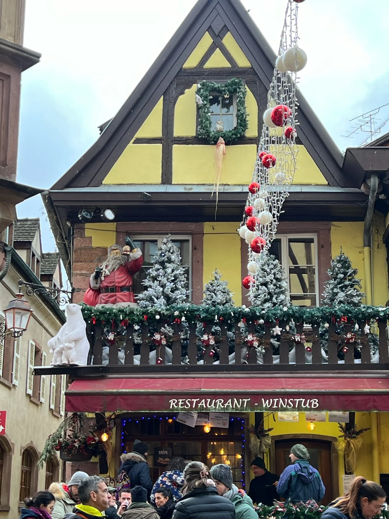 The next few days were a blur of Christmas markets and storybook villages: Riquewihr, Ribeauvillé, and Colmar. Each one dressed like it was auditioning for a postcard. Half-timbered houses leaned together under garlands of pine and gingerbread men strung from eaves. The air was cold enough to make the mulled wine feel like medicine. Somewhere between the roasted chestnuts and the sound of choirs echoing off cobblestones, I realized Alsace doesn’t just decorate for Christmas; it inhabits it.