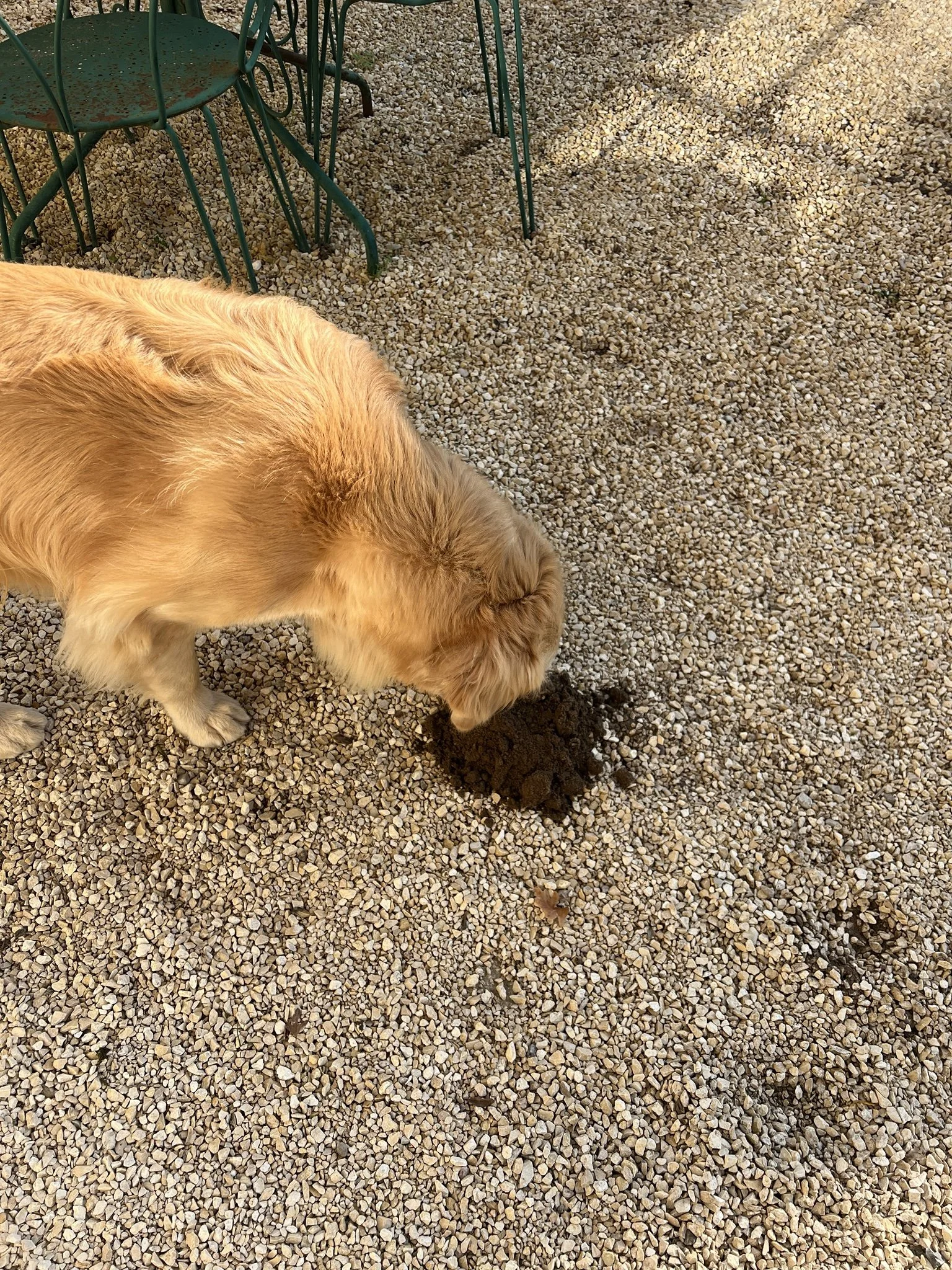 In two seconds, the gravel looked like a miniature battlefield. He’d gotten down four inches that fast. I yelled. He froze, instantly transforming into a guilt statue. Nose down, tail between legs, but not before one last, triumphant snort into the dirt. Then he took off before I could get to him.